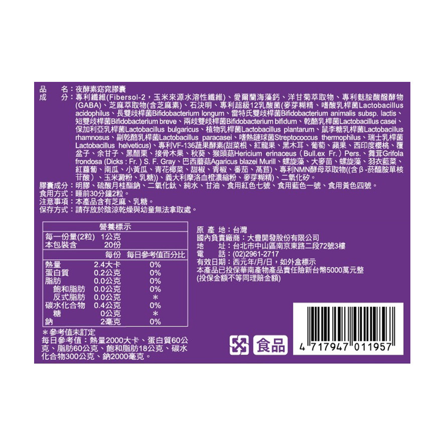 品名:夜酵素窈窕膠囊
