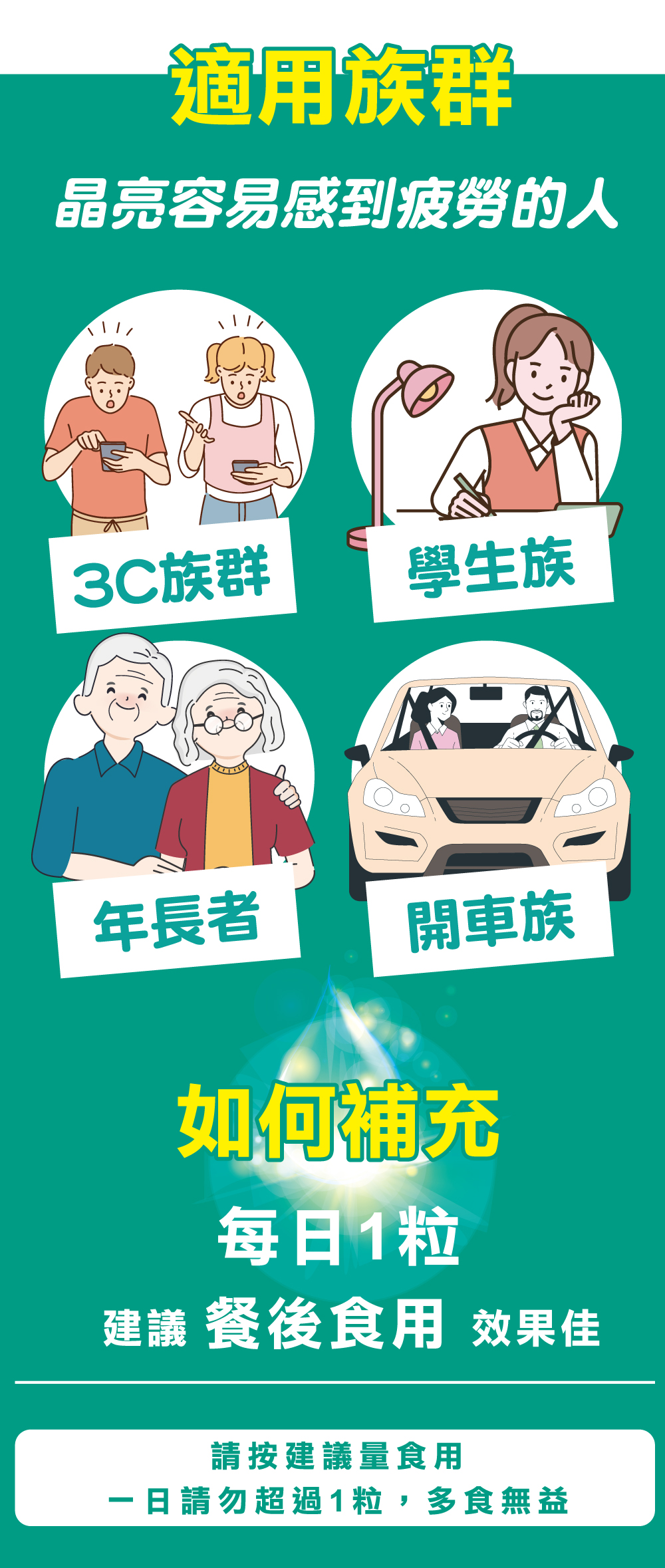 建議餐後食用效果佳,請按建議量食用,一日請勿超過一粒,多食無益。