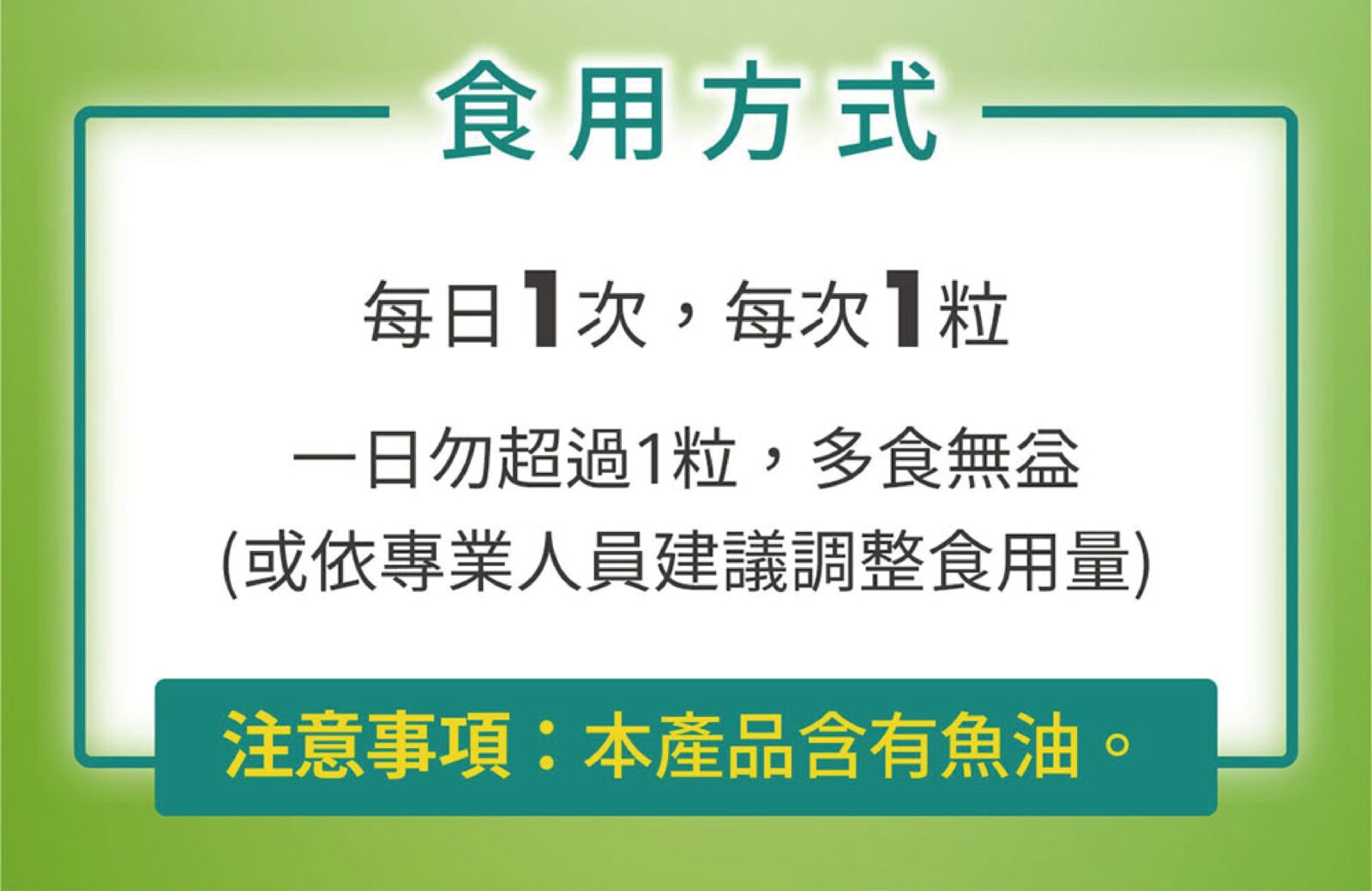 食用方式:每日1次,每次1粒。一日勿超過1粒,多食無益。(或依專業人員建議調整食用量)