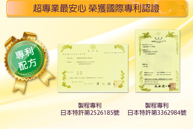 1.日本專利香蕉萃取物,獲得日本多項機能專利。